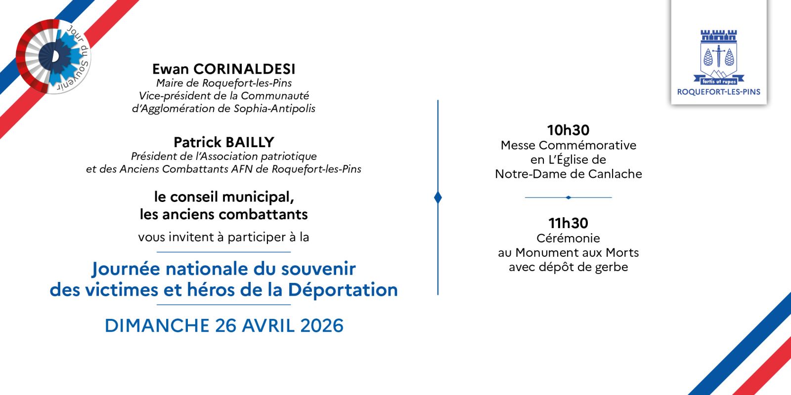 11h30 : Cérémonie au Monument aux Morts avec dépôt de gerbe